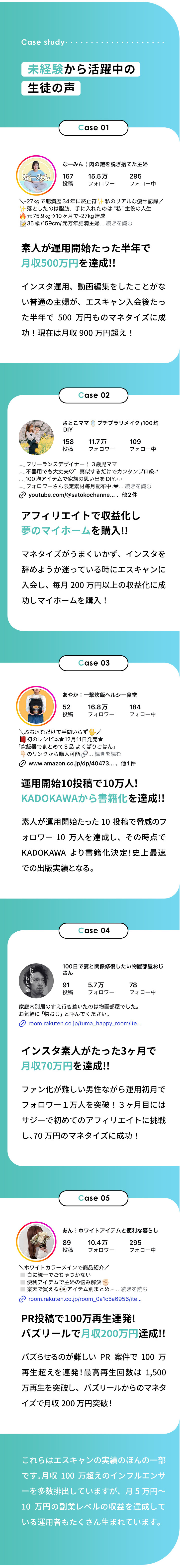 初心者から初めて、たった6投稿で2,000人以上のフォロワーを獲得した主婦の方もいるので大丈夫!