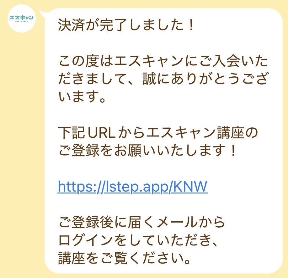 決済時後にエスキャン公式LINEから送られてくるリンクから、エスキャン講座のご登録をお願いいたします。