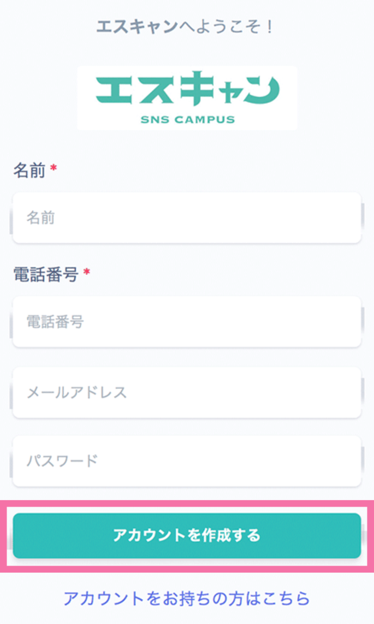 エスキャン講座サイト用のアカウントを作成して下さい。