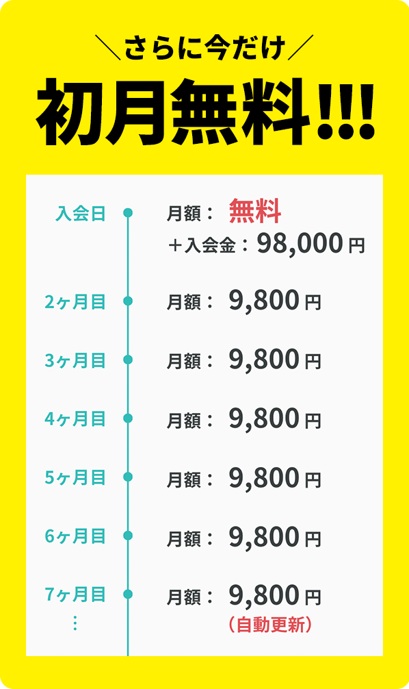 解約金は一切ありません。退会したいときにいつでも退会が可能です。(初回のみ6ヶ月契約となり、それ以降は任意のタイミングでの解約が可能です)