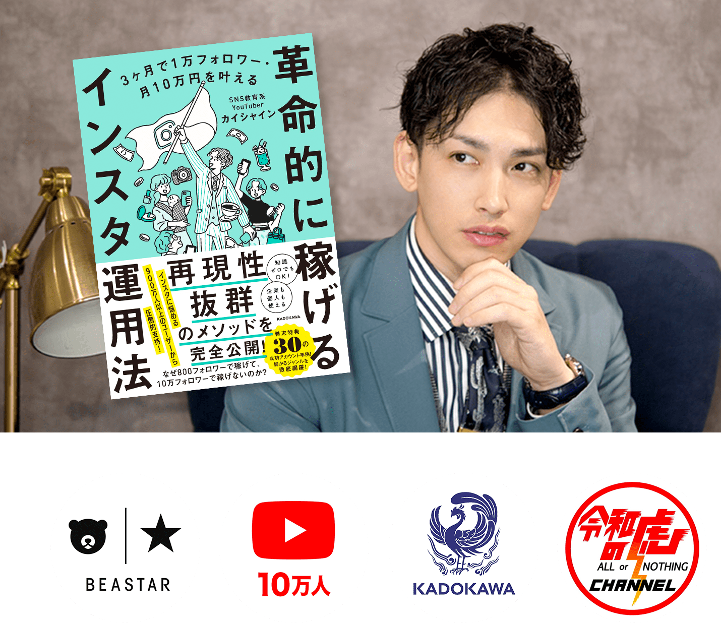 信頼できる環境で、多くの実績を持つカイシャインと、カイシャインが推薦する豪華講師とともにSNSで稼いで生きていく理想の未来を追いかけられます。